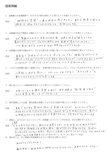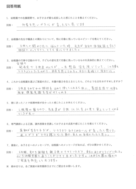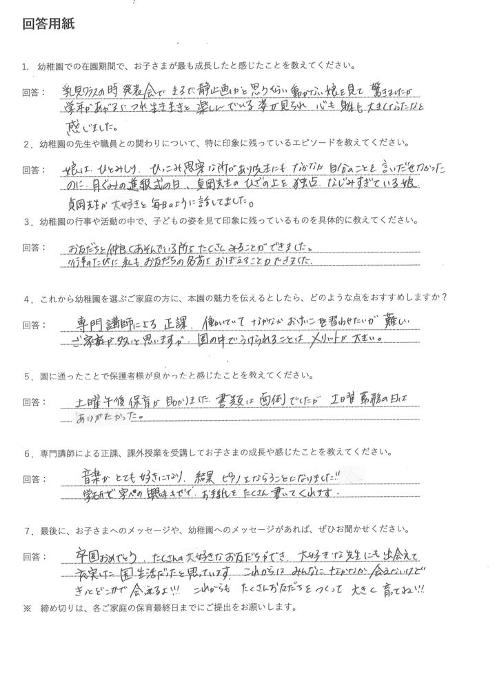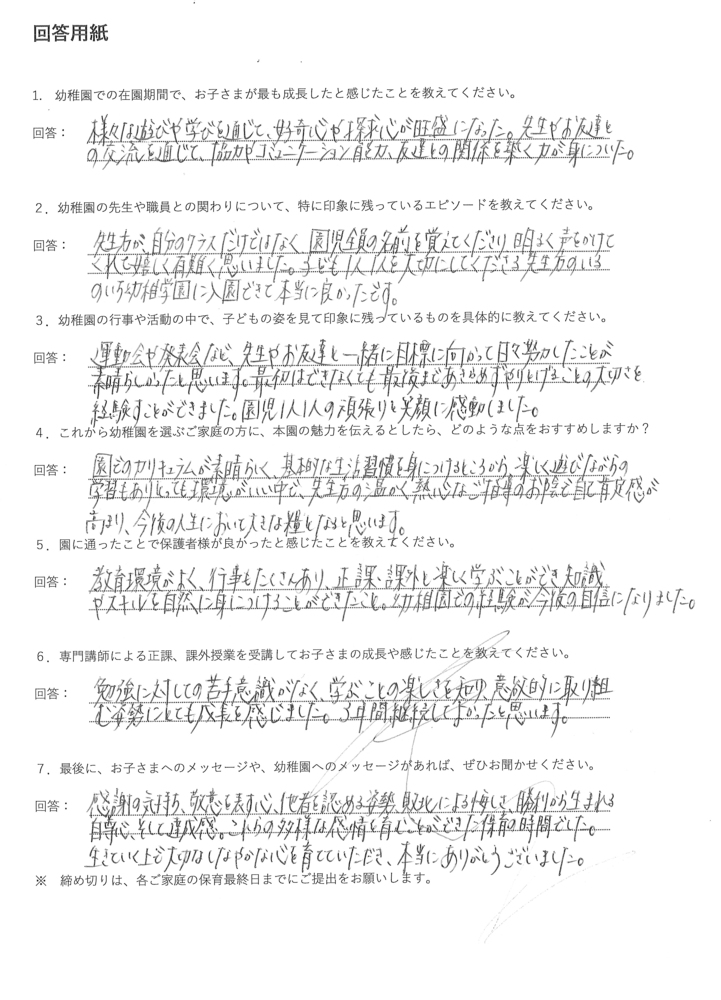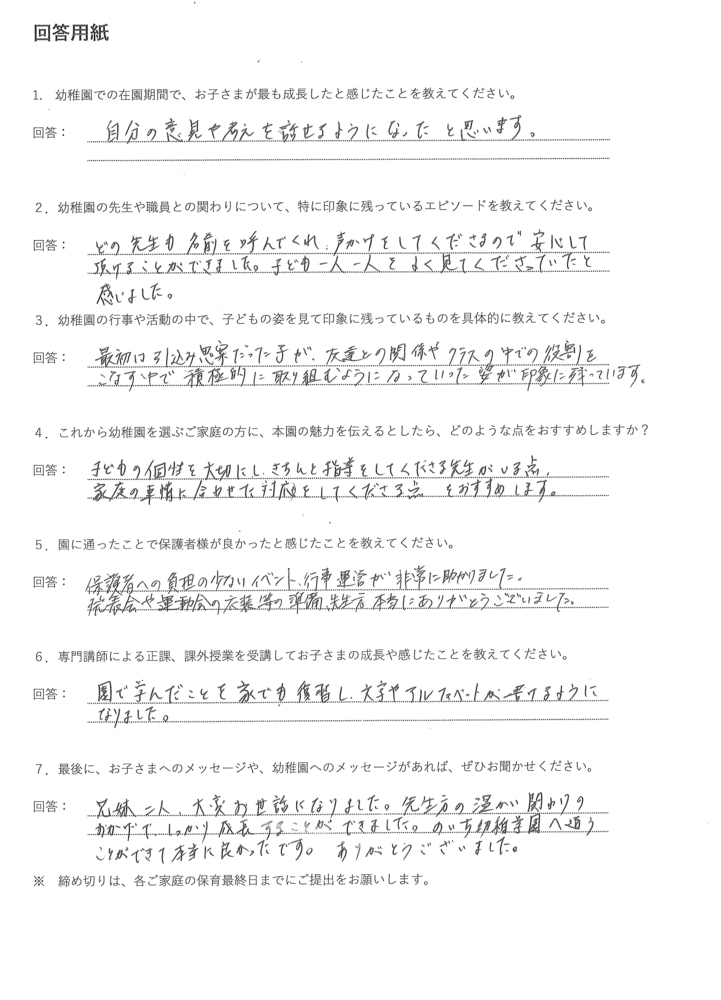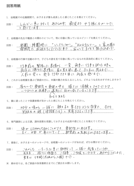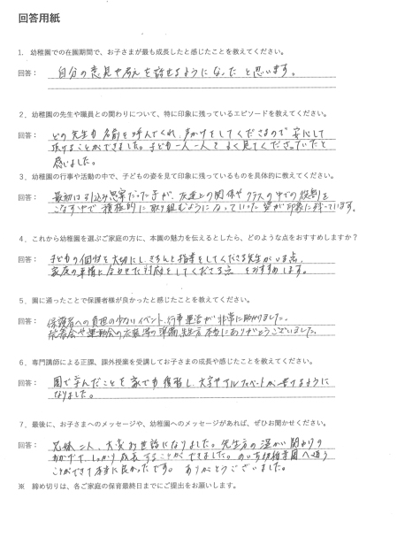 当園を卒園されたお子さまの保護者の声をご紹介します。
